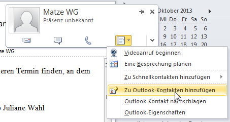 - Klicken Sie auf Zu Outlook-Kontakten hinzufügen.